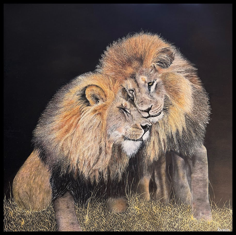 Dette maleriet av to løver har jeg valgt å kalle "Bestevenner". Jeg syntes bildet har så mye kjærlighet og varme.