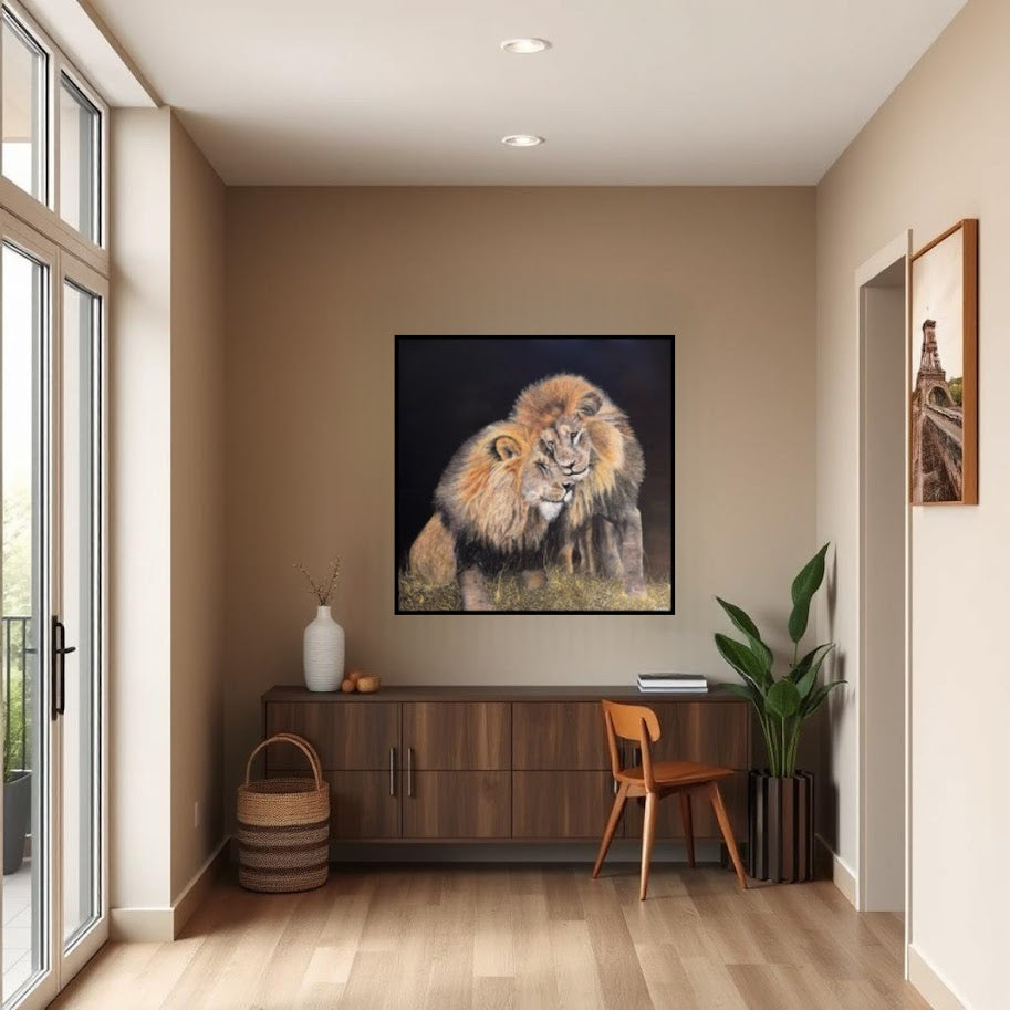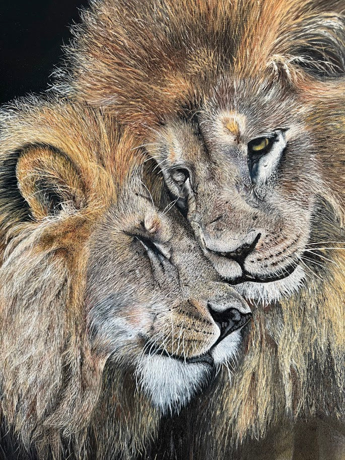 Dette maleriet av to løver har jeg valgt å kalle "Bestevenner". Jeg syntes bildet har så mye kjærlighet å varme.