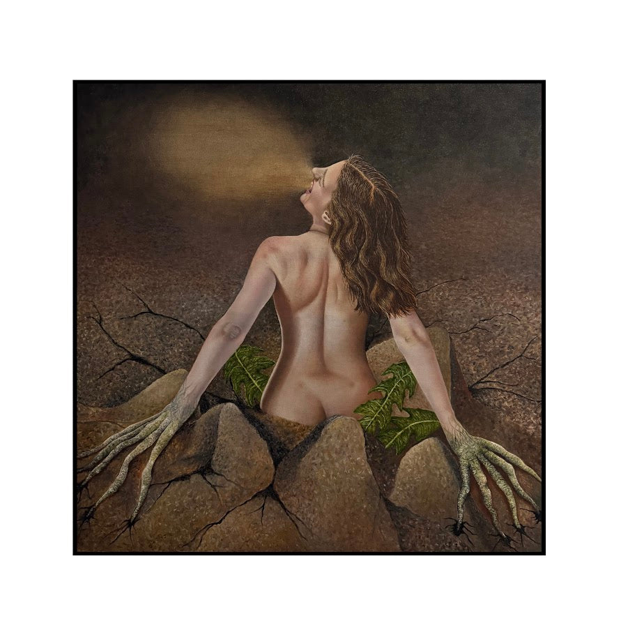 "Løvetannsbarn 2" har jeg kalt dette maleriet. Det har alltid fasinert meg hvordan den myke løvetannen presser seg gjennom hard asfalt. Slik vi skjøre mennesker kjemper oss gjennom livets harde prøver. Kommer oss gjennom med all kraft og kjenner en frihet når vi er igjennom.